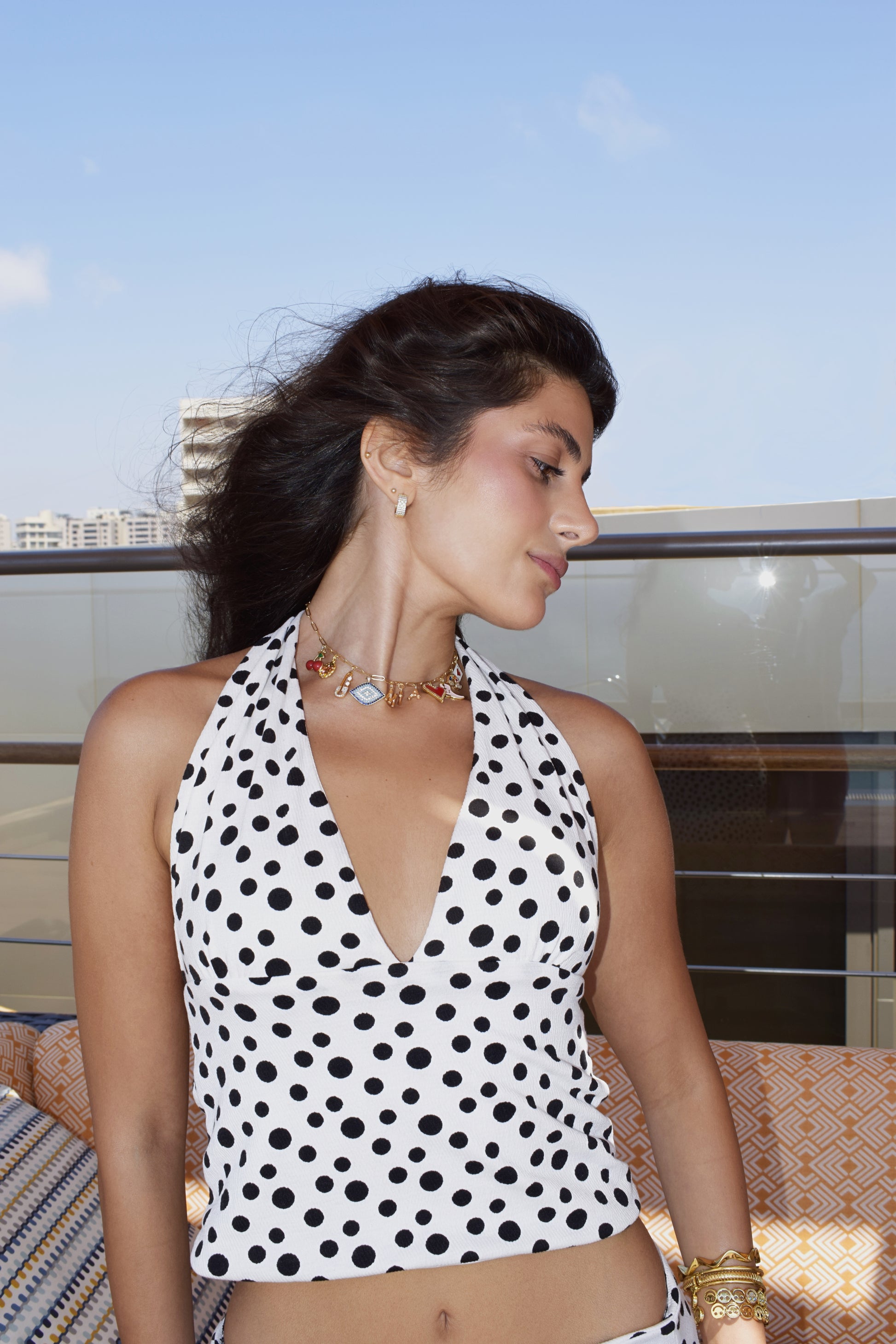 Cut in the print of the season with a plunging neckline and open back, this halter top flatters from every angle. Pair it with the matching maxi skirt or style it your own way. Lightweight, easy to wear, and made to move with you. Full set sold separately.