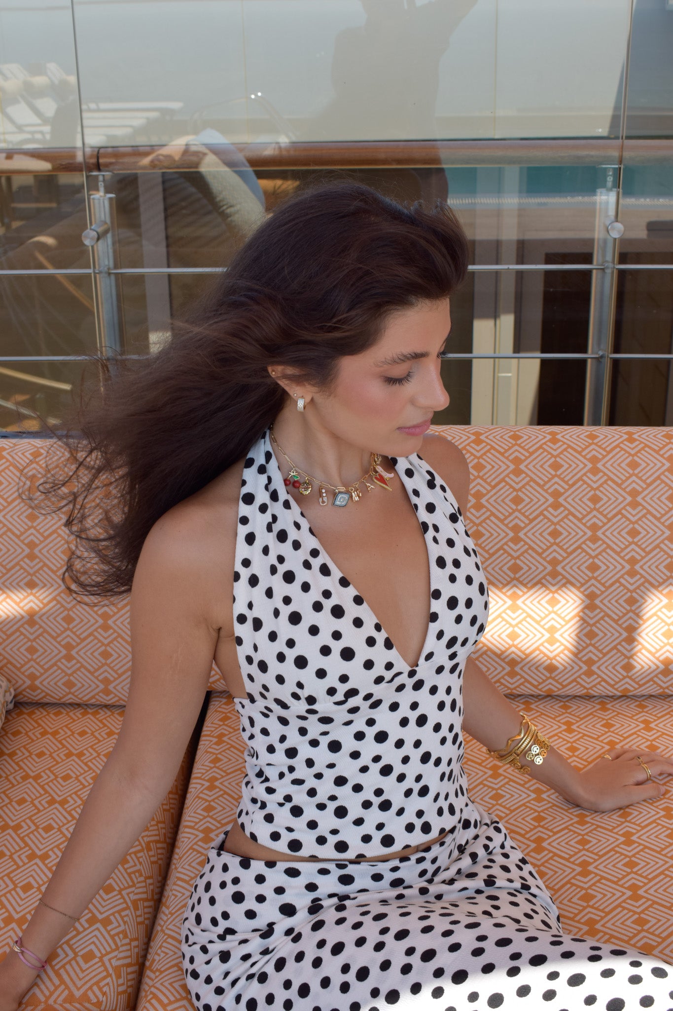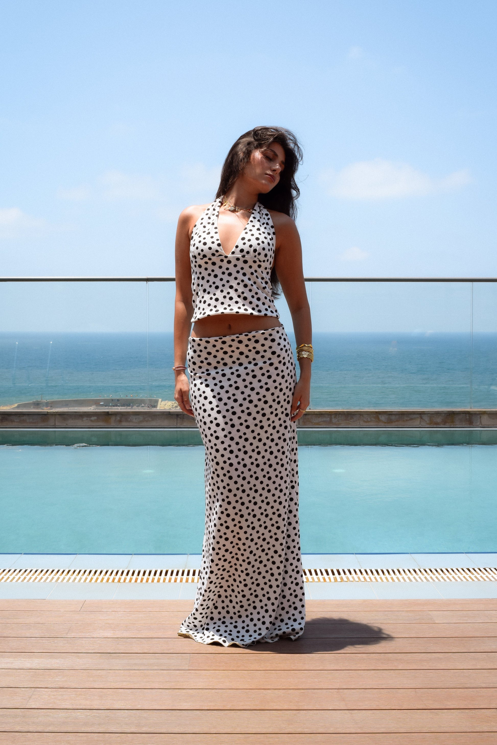 This two-piece set features a plunging halter top with an open back and a full-length skirt. Lightweight and lined where it matters, it’s perfect for warm days into breezy nights. The top is also sold separately for added styling flexibility.